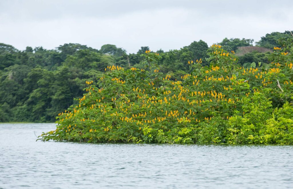 Once we left the dock, the captain hit us with a sudden acceleration across Gatun Lake. Along the way, we passed many huge ships making their way through the Panama Canal. Skipping across the water, our boat jumped the wakes with back-jolting hits. At least, we were too fast for mosquitoes. Chopping along at high speed, hair whipped as passengers clutched their hats.