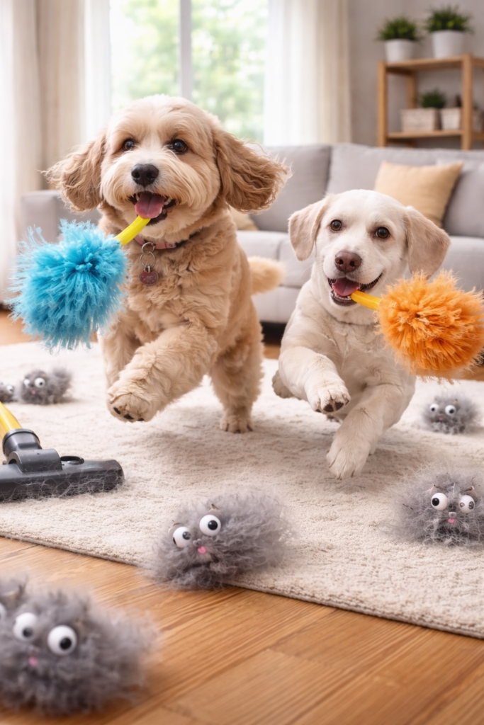 Our dogs are lovely creatures of the “non-shedding variety.” Of course, after living with them for years, we know that’s a marketing lie. Non-shedding apparently means the hair redistributes itself throughout the house in artistic ways under corners, rugs, and furniture. If they could vacuum after themselves, they would happily comply. But, without opposing thumbs, they rely on their humans for that.
