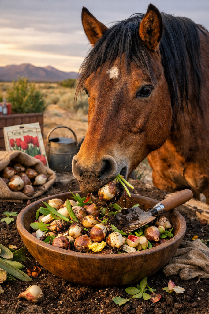 Will these bulbs bloom gloriously in spring, filling the front yard with color and vindication? Or will they become the most expensive forage the mustangs have enjoyed all season? That remains to be seen. But still, we plant because gardeners always do, with hope. With crossed fingers, we understand that nature has the final say, sometimes showing up wearing hooves.