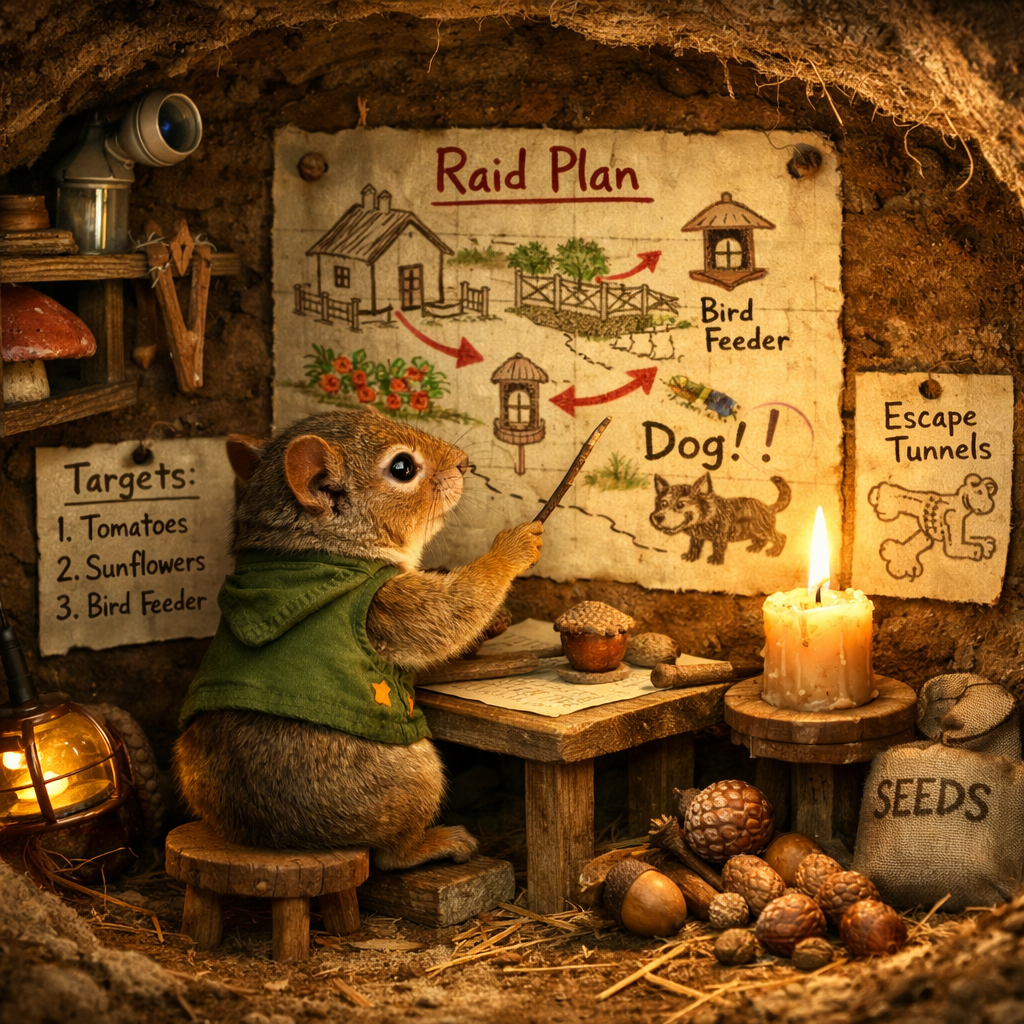 Noticeably absent is the squirrel. Not gone. Just…not here YET. His absence feels temporary, suspicious even. For now, we’re realistically optimistic.