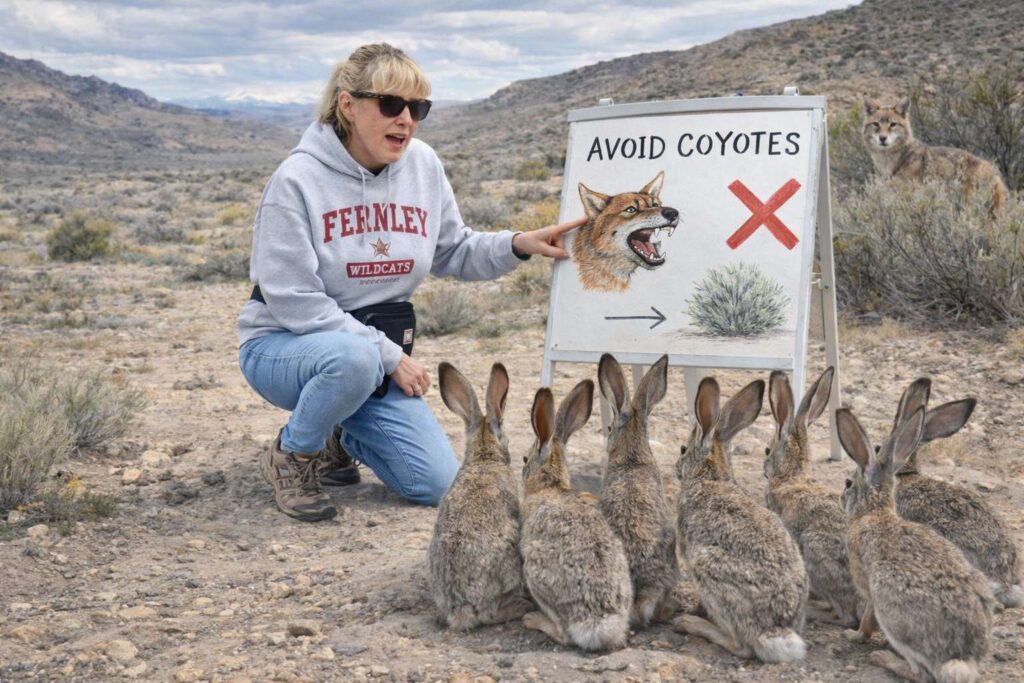 Jackrabbits darted across the road to show up for a lesson on how to escape coyotes hiding in the sagebrush.
