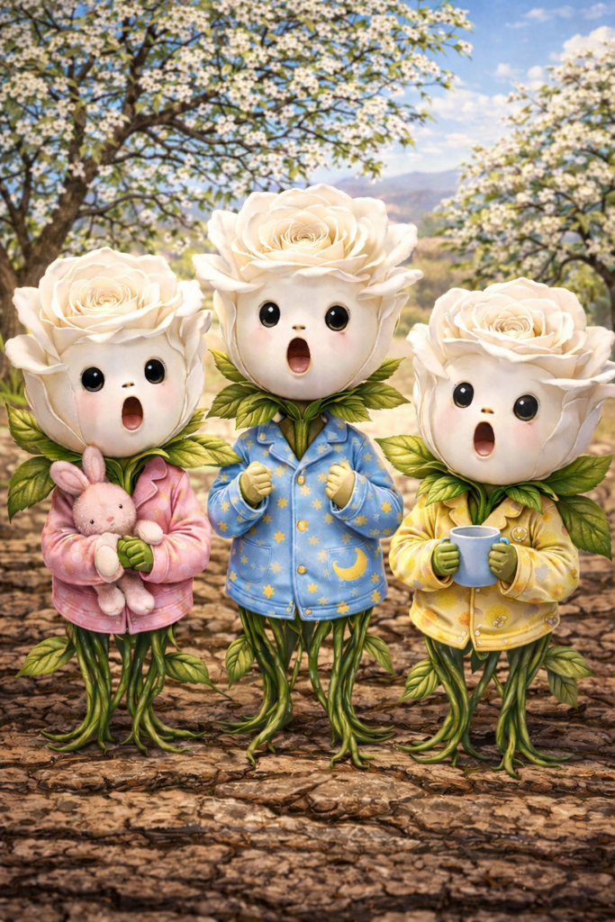 But in hours, everything will change. Tomorrow, the thermometer will read eighty degrees, as if someone quietly flipped a switch while we were sleeping. The roses seem slightly surprised by the whole arrangement. They’re doing their best to catch up, but you can almost imagine them whispering to one another that they thought there would be more time before the real heat arrived.