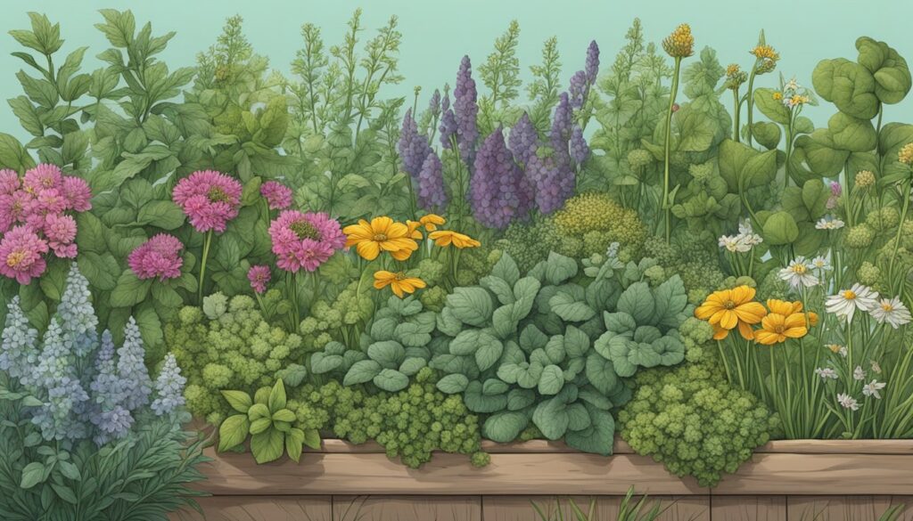 Purple echinacea swaying beside golden calendula. Lavender lining a walkway. Chamomile scattered like tiny stars between vegetables. Sage and thyme forming tidy little hedges of silvery green. A corner of mint perfuming the air when the sun warms the leaves. The bees, butterflies, and other pollinators will love this!