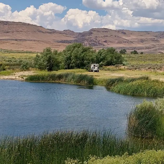 With miles left to travel, we drove by Gerlach and Empire, winding along canyon roads beneath a Nevada-blue sky scattered with every kind of cloud imaginable. The farther we went, the more the world became more wide, spacious, and beautifully untouched. It seemed nothing could be prettier than the pristine little Squaw Reservoir. Named years ago on native land, this little body of water will keep her name forever. 100% politically correct in Nevada.