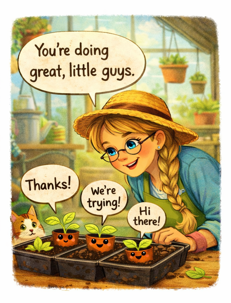 For years, I’ve been chatting with my seedlings like they’re old friends. Encouraging them on slow mornings, I check in when they look a little tired. I always remember the occasional pep talk when the weather decides to skip spring altogether and head straight into summer, which, as we all know, happens around here more often than we’d like. Apparently, there’s more to it than simple encouragement.